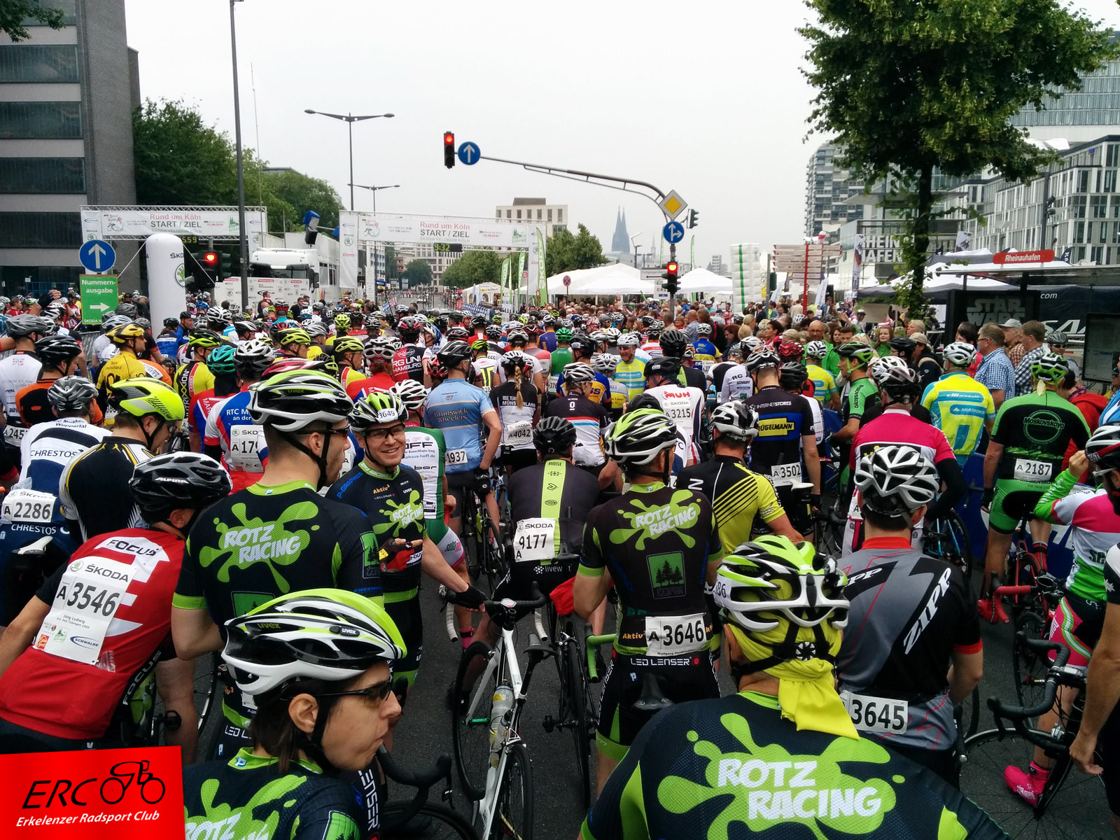 Mein erstes "großes" Rennen sollte eh Köln sein. Wegberg ist ja eher so dazwischen gekommen, denn zu Köln habe ich bereits kurz nach Anmeldeeröffnung den Entschluss gefasst mitzufahren. "Rund um Köln" ist ein sogenanntes Jedermannrennen. Soweit ich als Radsportanfänger das richtig aus allen verschiedenen Lagern auffassen durfte, sind Jedermannrennen bei den Lizenzsportlern nicht ganz so hoch im Kurs, werden aber dennoch von ihnen Besucht. Man sagt, Jedermannrennen sind gefährlicher, da jeder mit einem Rad dort mitfahren darf. Verstand ist nicht vorausgesetzt. Dem möchte ich so nicht unbedingt beipflichten, denn auch wenn ich nach dem Start mit einigen "Fahrmanövern" von besonders "rücksichtsvollen" Fahrern zu kämpfen hatte, so glaube ich eher, dass diese schiere Masse an Startern ein größeres Problem bzw. eine höhere Gefahrenquelle darstellt als simpel zu sagen: Die haben keine Lizenz, die können nicht Radfahren. Aber das nur am Rande.