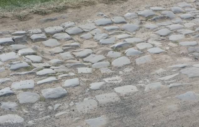 Schon das erste Pavé brachte jeden Bestzeitträumer brachial zurück auf den Boden der Tatsachen. Ruhige Feldwegrunde im Ü30er Schnitt? Das ich nicht lache! Kopfsteinpflaster??? Eine lächerliche Untertreibung! Jeder der schon ein wenig in Flandern unterwegs war und meint Erfahrung damit zu habe, kann seine vermeintliche „Erfahrung“ mit dem Belag mal getrost auf den Müll kippen. Das gleiche haben hier offensichtlich auch die Straßenbauer getan: ihren Müll vom Straßenbau einfach in die Felder gekippt. Den hingeworfenen und dann grob sortierten Haufen Steine hier konnte man als alles bezeichnen, nur nicht als ordentliches Kopfsteinpflaster. :-( Mein Rennrad und ich wurden durchgeschüttelt als wäre ich mit nem Hardtail downhill irgendwo in den Alpen unterwegs. Schon nach Pave´ Nr. 4 schmerzten mir Fingergelenke, Hände, Unterarme, Nacken, Kopf quasi alles oberhalb der Gürtellinie, als wäre ich mit dem Truck kollidiert. Ich wußte vorab gar nicht, was einem am Körper so alles weh tun kann. Auch ne Erfahrung;) Manche Rennradfahrer wichen teilweise auf die Linderung versprechenden schmalen Dreck- und Schotterstreifen rechts und links am Wegesrand aus. Streifen auf die nie ein Rennradfahrer sein Gefährt eigentlich hinsteuern würde. Aber “In der Not…..Bla Bla Bla“ heißt es in einem Sprichwort ja so schön;) Da die Dinger aber offensichtlich mit zahlreichen spitzen Steinen bestens ausgestattet waren, fielen die Weicheier reihenweise Pannen zum Opfer. Was also Tun? Genau, schön drauf bleiben auf den mittelalterlichen Autobahnen. Da ist zwar der Bandscheibenvorfall vorprogrammiert, aber zumindest bleibt das Rad ganz.