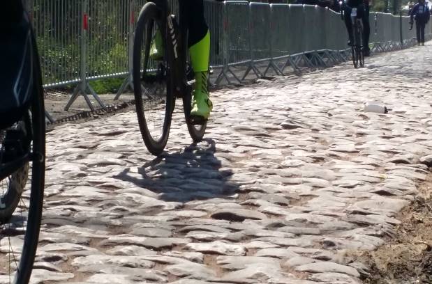 Um 07:30 Uhr war Schluss mit Lustig und ich tauschte den komfortablen, warmen Bussessel gegen ein schweinekalten Fahrradsattel. Die Veranstalter hatten sich bei der Challenge für Amateure auf das Wesentliche konzentriert und die 80km geteerte Anfahrt vom Profistartort Compiègne zum ersten Pavé (Kopfsteinpflasterpassage) einfach mal weggelassen. Das verkürzt die zu fahrende Strecke zwar auf nur 175 statt 255km, jedoch wurde keines der insgesamt 29 zu fahrenden Pavés dabei ausgelassen. Im Gegenteil, ohne richtig eingefahren zu sein startete der erste dieser zwischen ein bis knapp vier Kilometer langen Abschnitte schon nach wenigen Kilometern. Nach Bravo!