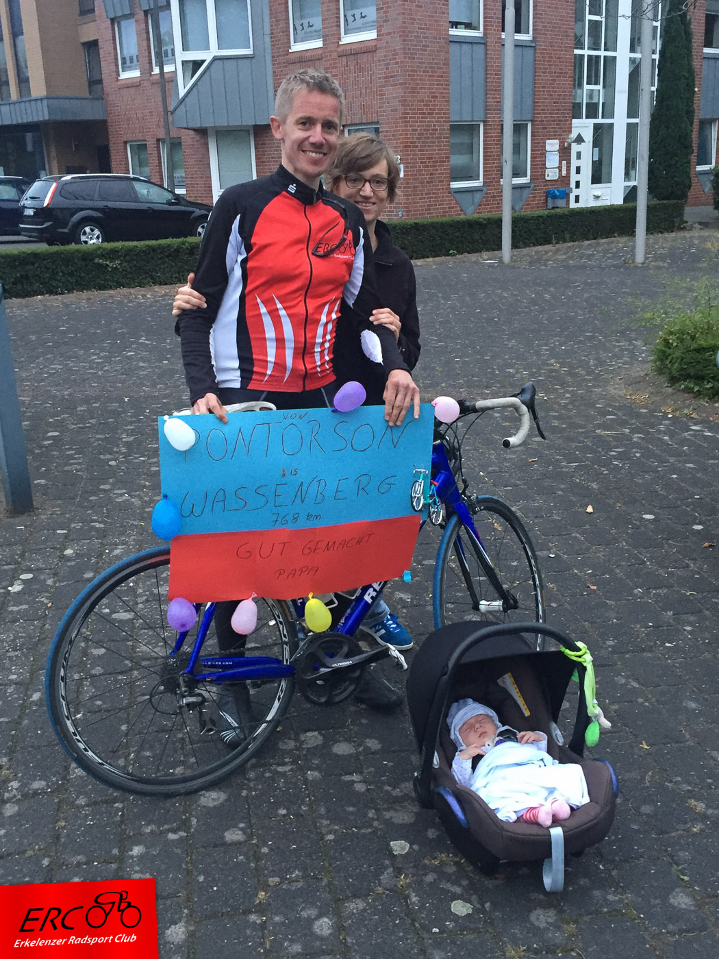 Mit 33 km/h im Schnitt waren die letzten Hundert dann auch schnell erzählt. Ich wollte nur noch nach Hause zu Frau und Kind und das am besten vor Sonnenuntergang. Und nichts……absolut nichts…..auch keine Kraftfahrstraße, leere Handy- und Navi-Akkus oder ein lächerliches Bächlein wie die Maas konnten mich daran hindern, dem Ziel entgegenzurasen. Um 19:25 Uhr erreichte ich nach 37:25 Stunden Brutto oder etwas über 33 Stunden Netto und 802 statt errechneten 768 Streckenkilometern das Rathaus von Wassenberg!!!!!!!!!!! Karamba!!!!!!!!!!!! Auch dass ich ohne die Probleme locker 3-4 Stunden eher im Ziel hätte sein können, tat meiner Freude keinen Abbruch.