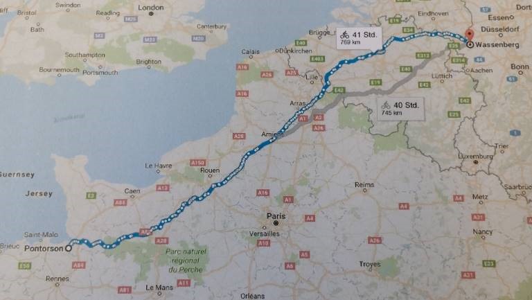 802 km und 4500 Höhenmeter sind es letztendlich geworden, um von Pontorson in der französischen Normandie auf dem Rennrad nonstop bis nach Wassenberg in den beschaulichen Kreis Heinsberg zu radeln. Oder besser gesagt……37 ½ Stunden den Allerwertesten mit nur wenigen verpflegungstechnisch notwendigen Pausen auf einem Rennradsattel plattsitzen! Wer so einen Blödsinn gemacht hat? Ja wiedermal ich!!! :-)